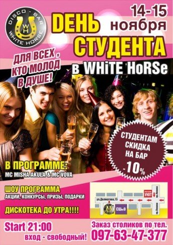 Студентам скидка на бар 10%.