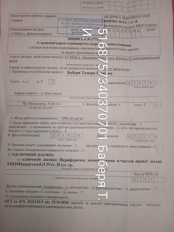 Педагогу из Каменского нужна помощь на лечение рака легких
